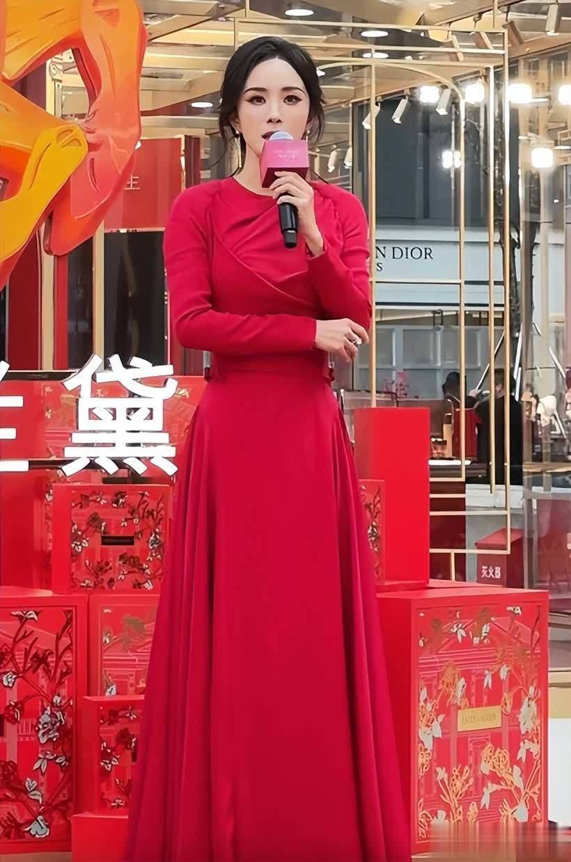 穿了一条红色长裙,整的和过年了似的,不过这穿的有点太素了!