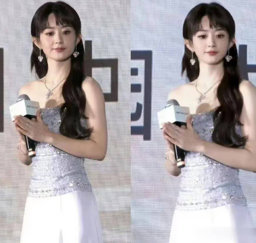 而赵丽颖这次参加沁园的年会晚宴,穿了一条灰色的抹胸长裙。